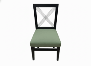 A refined dining chair crafted from solid wood with foam and fabric upholstery, offering comfort, durability, and elegance for premium dining spaces.